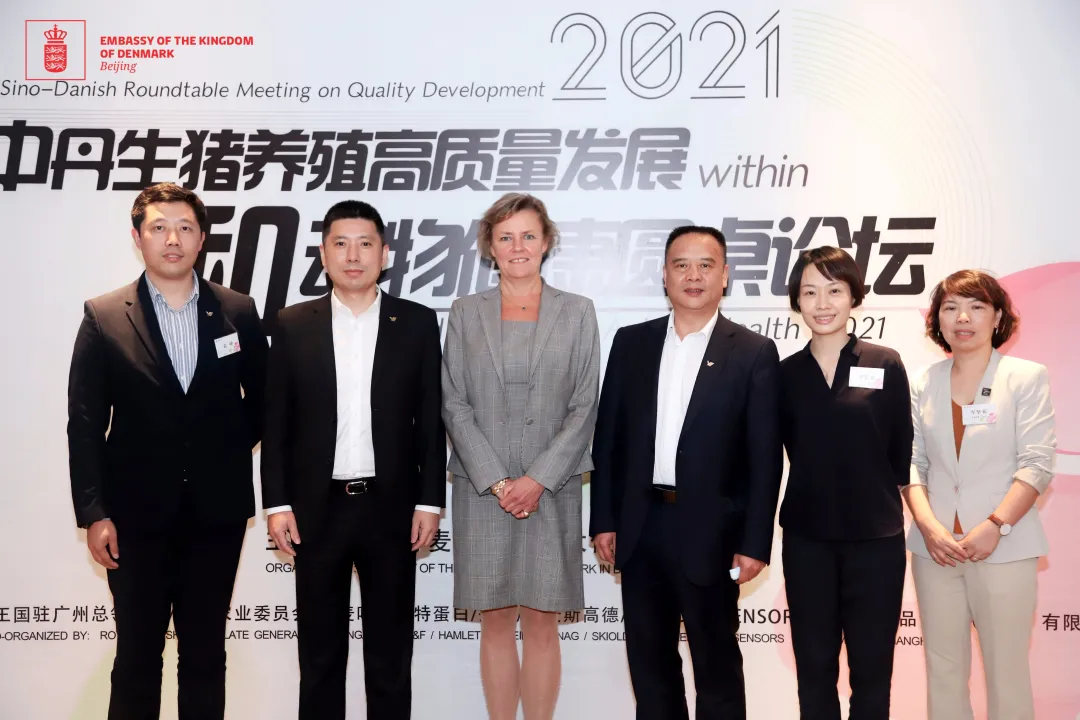 丹麦王国驻华大使馆公使衔参赞罗曼蕊、广东省农业技术推广中心副主任、广东省养猪行业协会会长陈三有携同广东省养猪行业协有关单位代表出席本次会议。