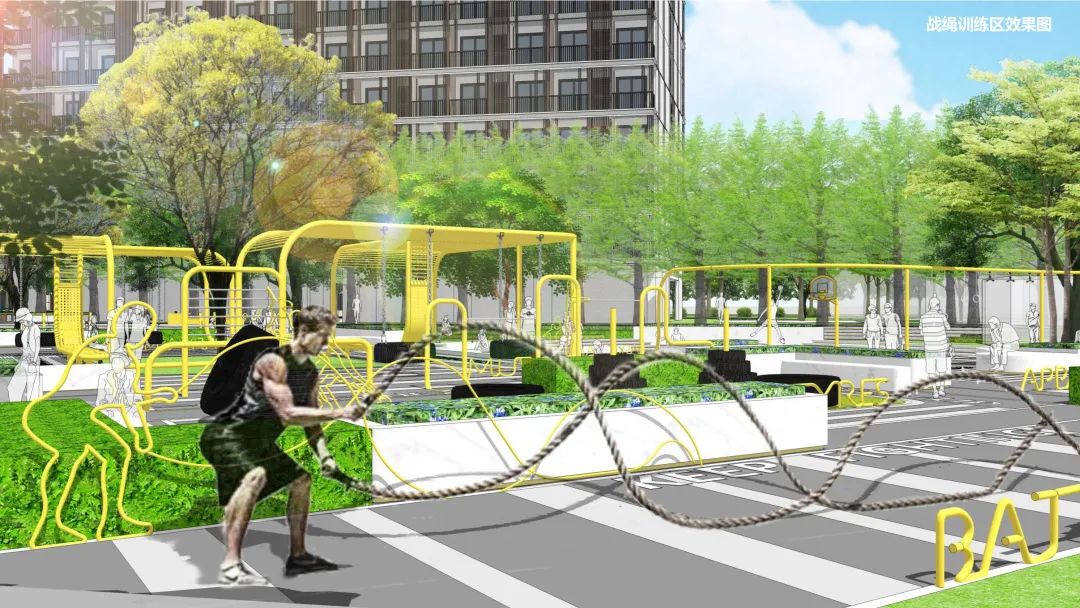 上海宝山绿地铂派社区结合时下年轻人热衷的运动项目和休闲娱乐场景,以简约、实用的设计手法匹配运动主题,用管子串起了不一样的“大操场”,呈现出「健康宅」的年轻时尚活力。