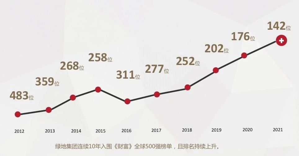 《财富》世界500强排行榜一直是衡量全球大型公司的最著名、最权威的榜单,被誉为“终极榜单”。自2012年成为中国首家以房地产为主业的世界500强企业以来,绿地已连续10年成功入围,排名整体实现稳步提升。