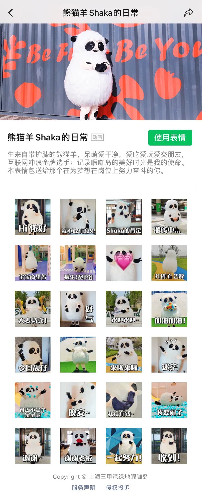 近期,名为“熊猫羊Shaka的日常”,以记录Shaka的日常为元素的表情包在微信表情商店中上线。Shaka可爱又不失幽默的画风一经登录表情平台,就获得超多热评,受到了许多消费者的点赞。