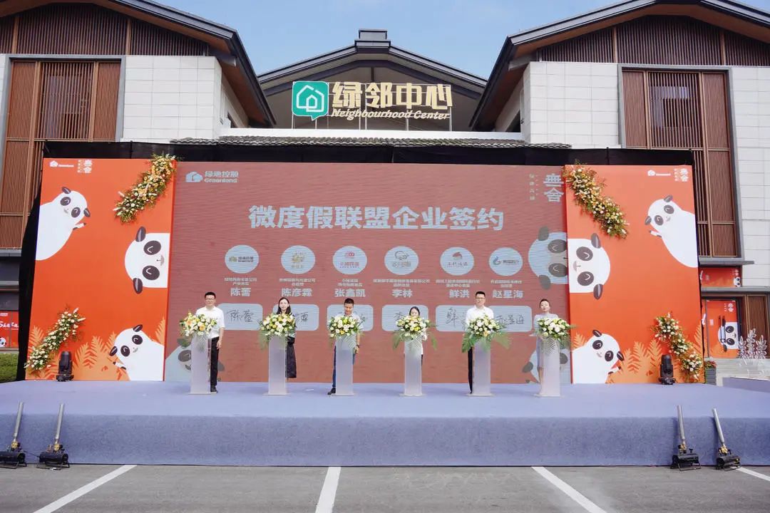 随后,仪式伴随着欢快的音乐,气氛推入高潮。绿地无舍公司产业总监陈蕾先生以及小猪民宿、御手国医、贵州瑞银鸟、唐郡文旅以及上航国旅等企业代表上台,进行“微度假”企业联盟签约。这意味着无舍度假休闲产业正朝着集群式、主题式的趋势发展。