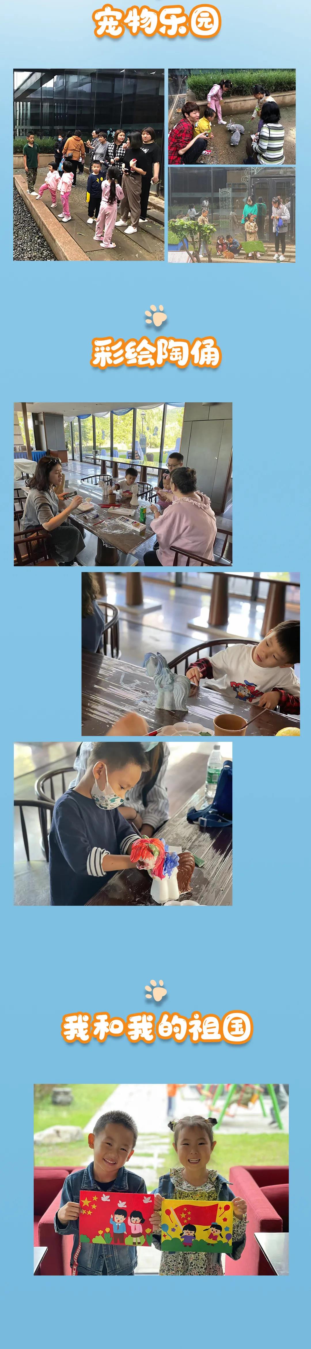 宠物乐园、彩绘陶俑、超级黏土、“我和我的祖国”拼贴画、曲奇制作、化身“小小消防员”、彩绘风筝....