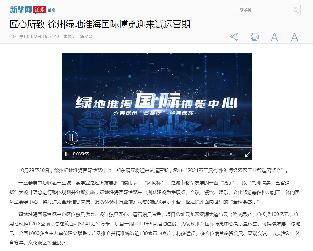 绿地国际会展徐州淮海国际博览中心作为徐州在新时期的重要战略平台和对外展示窗口,首次登台亮相意义重大,对于提升城市功能品质、促进产业繁荣发展、增强中心城市集聚辐射力等都具有重要的意义。