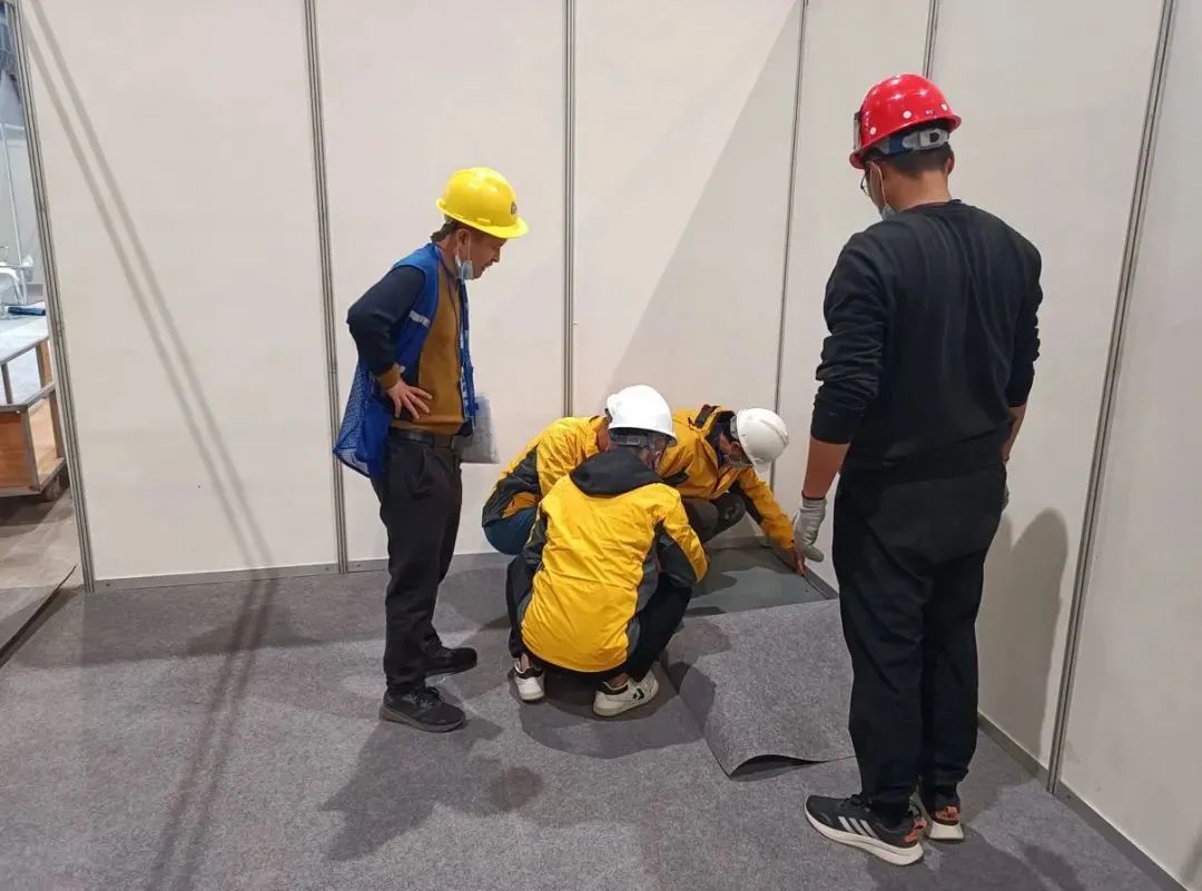 绿地国际会展人以决胜之心做好安全、消防、防疫、卫生、布撤展、现场服务等各项准备工作,誓要全力拿下首战开门红。