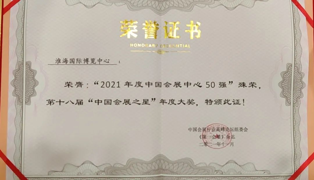 近日,由中国会展业高峰论坛组委会、《第一会展》杂志主办的“2021中国会展行业高峰论坛”在上海举办。绿地国际会展徐州绿地淮海国际博览中心荣膺“2021年度中国会展中心50强”、“全国优秀会展场馆管理奖”“中国会展产业大奖”三项殊荣。