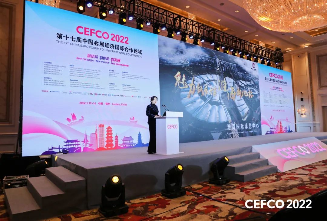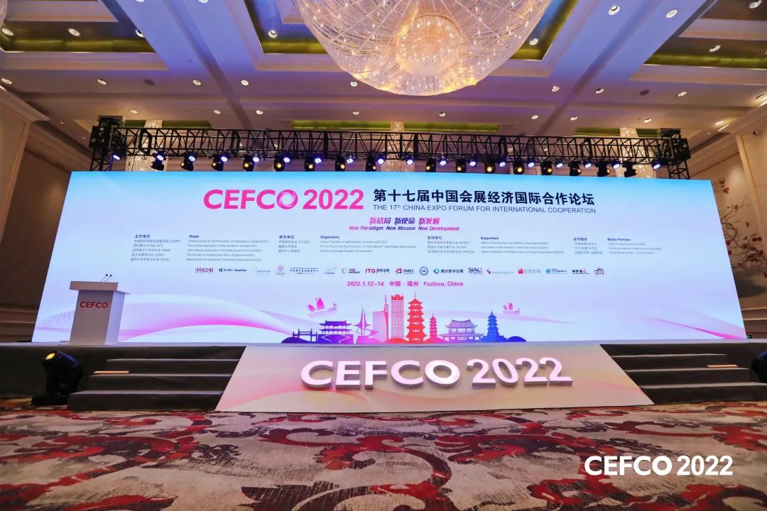 CEFCO论坛由中国贸促会、国际展览业协会、国际展览与项目协会、独立组展商协会、国际大会及会议协会共同主办,中国国际商会、福建省贸促会、福州市人民政府承办。此次论坛以“新格局、新使命、新发展”为主题,旨在深入探讨会展业未来发展趋势,进一步提振行业信心,推动会展业克服当前大环境的不利影响,实现高质量发展。