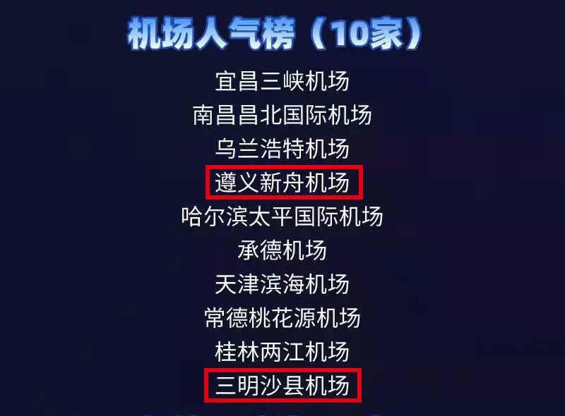遵义新舟、三明沙县两家合作机场也榜上有名。