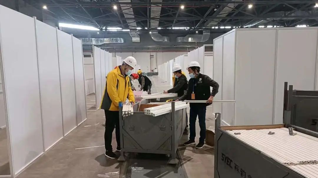 自3月28日江苏省相关单位部署淮海国际博览中心为江苏省三所示范型方舱医院之一开始,国博的运营团队就已经投身于方舱医院的建设中,方舱保障服务队的全体成员更是在方舱医院中日夜奋战一个多月了。同志们投入一线,争分夺秒,不辞辛苦,以时不我待只争朝夕的精神,在短短两天内就完成了1008个隔断空间的搭建,成为第一个完成任务并顺利通过验收交付的承建单位,体现国博团队的“会展速度”。