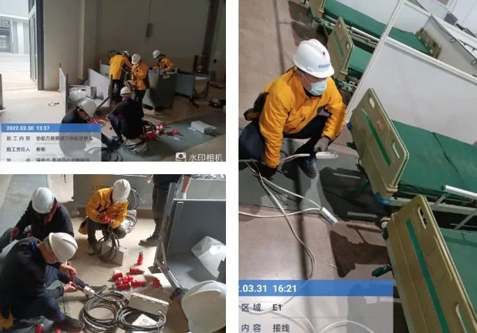 在完成自身任务后,国博团队再次积极投入到协助其他建设单位的工作中,接驳电箱、查验线路、搬运物资,哪里需要,哪里就有小黄人的身影,展现国博团队的“会展协作”;作为对展馆最熟悉的人,同志们更是主动请缨留守方舱,为保障方舱安全发挥专业力量,发扬国博团队的“会展担当”。