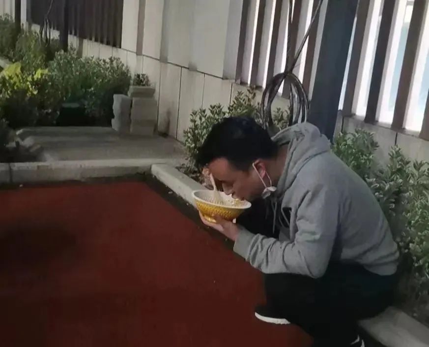 到达之后,经过重重沟通,章墨和团队终于进入了铂派公寓,当时已经是晚上八点多了。外卖送不了,也没地方吃晚饭,他们就蹲在停车场吃泡面;没有打扫卫生的工具,就拿破旧衣服撕开使用的、拿自己带来的毛巾搞卫生;也没有入住的地方,他们就自力更生清扫出自己的房间。