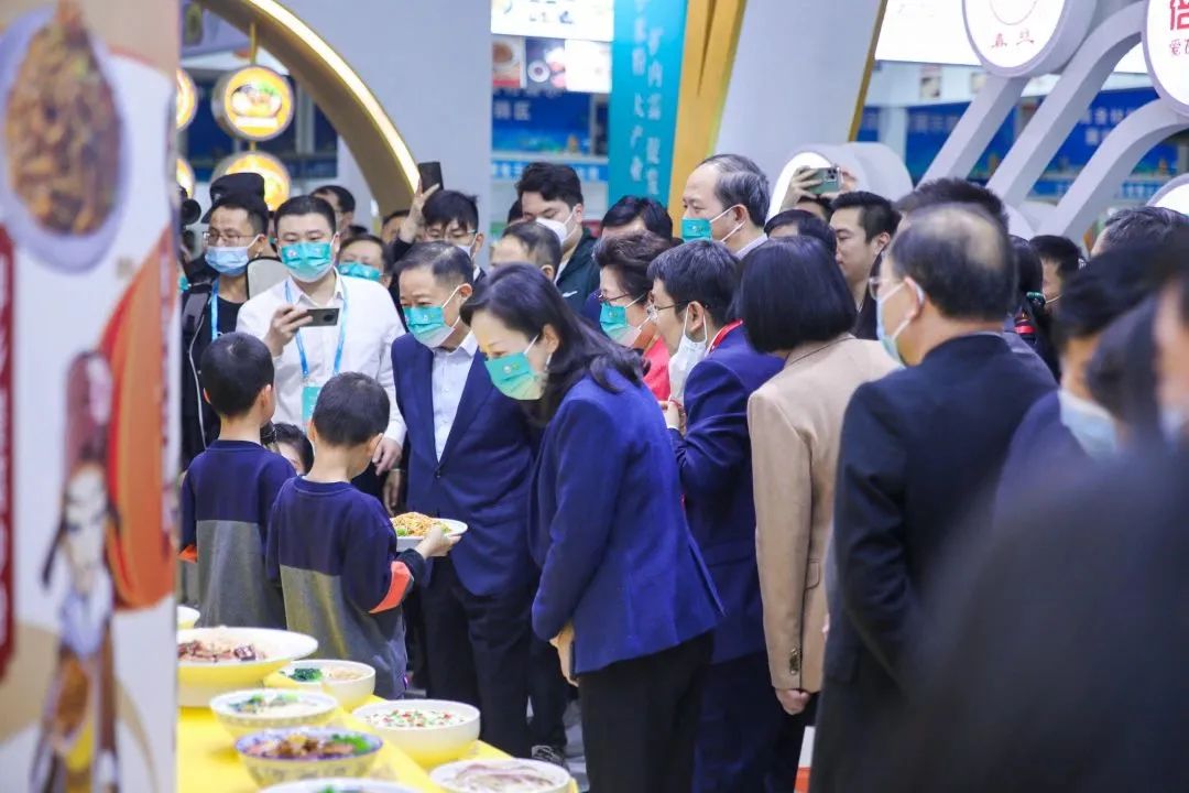 图为:领导一行现场察看米粉节展览展示情况,听取展位设置等介绍,与参展企业进行沟通交流,了解参展企业产品。