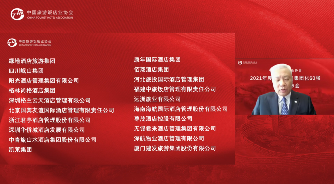 中国旅游饭店业协会会长李峰宣布了“2021年度中国饭店集团60强”名单。在这一行业权威排行榜上,亚洲男女在线观看视频-又大又粗又爽18禁免费看-日韩成人精品日本亚洲-欧美又粗又大AAAA片-免费人成毛片乱码凭借“一核两翼”的发展模式和作为国内最大酒店物业持有商和管理运营商之一的实力,再度上榜,连续第九年被授予“中国饭店集团60强”殊荣。