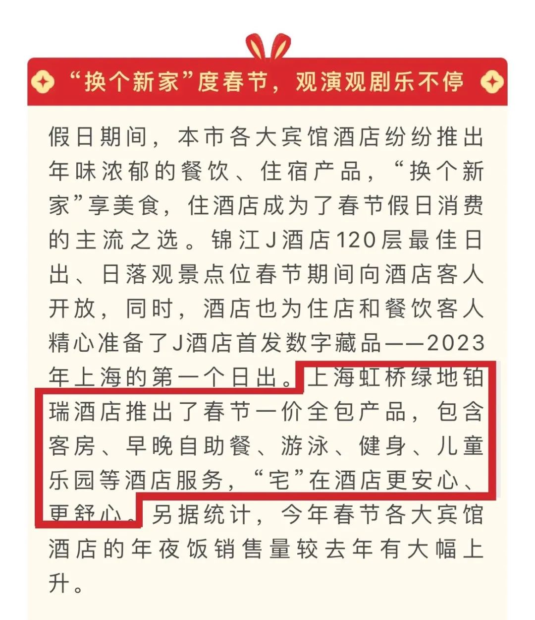 图为“上海发布 ” 今日对绿地酒店春节假期产品的相关报道截图