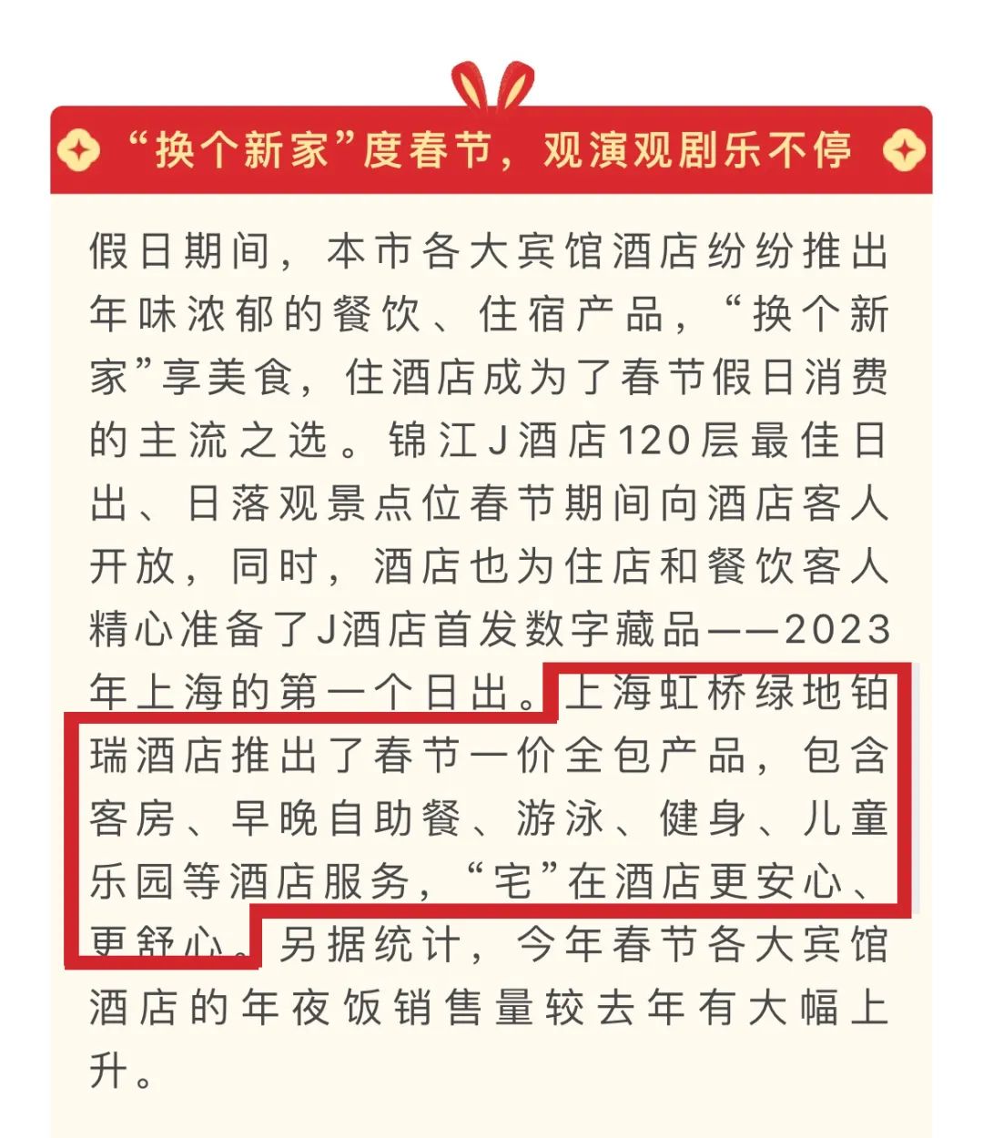 图为“上海发布 ” 对绿地酒店春节假期产品的相关报道