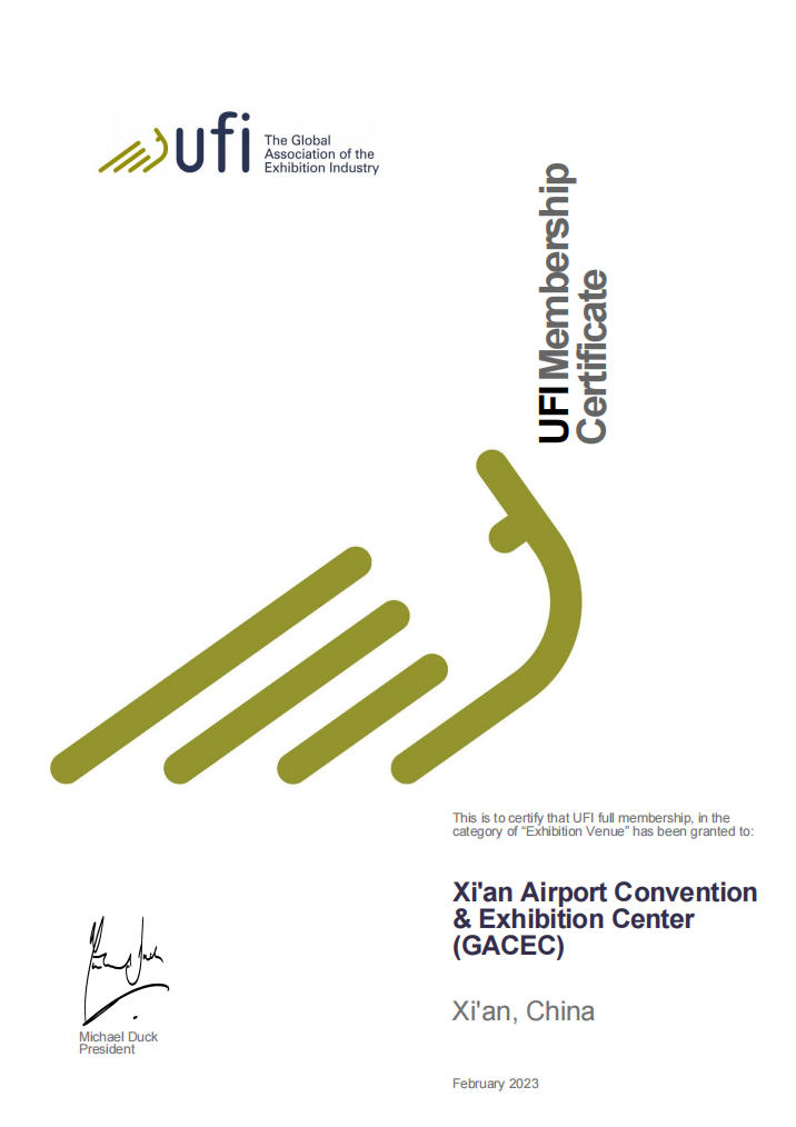 经国际展览业协会(UFI)行政委员会审议,绿地国际会展西安临空会展中心正式成为UFI成员,跻身国际化展馆行列,表明了会展中心在展馆建设、运营管理、承办展会和综合服务水平等方面获得了国际会展行业的认可,是展馆国际化运营历程中的重要标志,也体现了绿地会展场馆的国际化、专业化水平得到国际会展业同仁的高度认可。