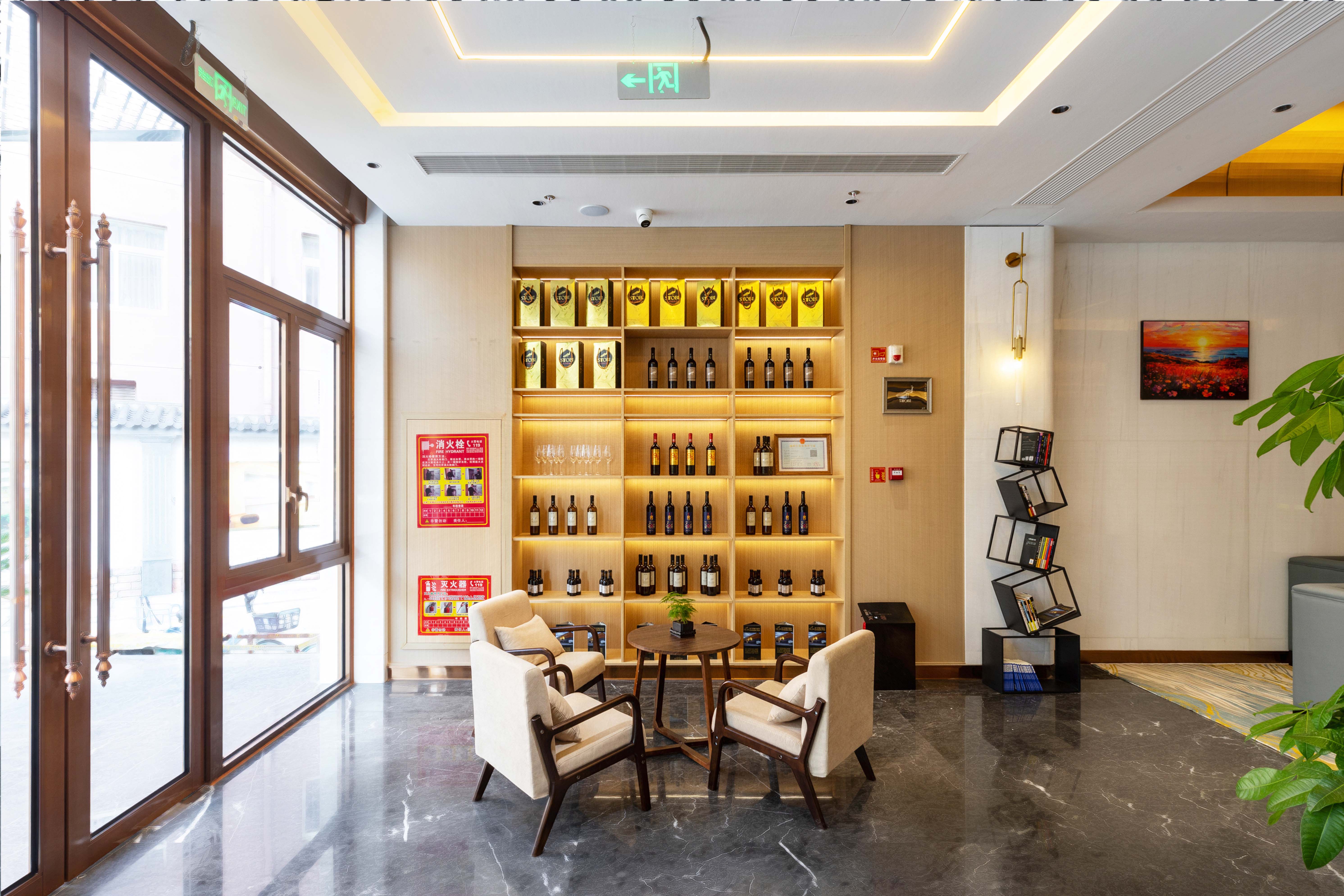 酒店的还拥有国内首个北马其顿STOBI红酒体验馆,体验馆开幕当日北马其顿共和国驻华大使萨什科纳塞夫大使阁下与夫人亲临现场,为STOBI红酒体验馆揭幕。未来,来自各地的宾客都可在此品尝美酒,分享旅行趣事,为游客提供一个度假放松的空间;为商务人士营造一个高端的商洽之所。