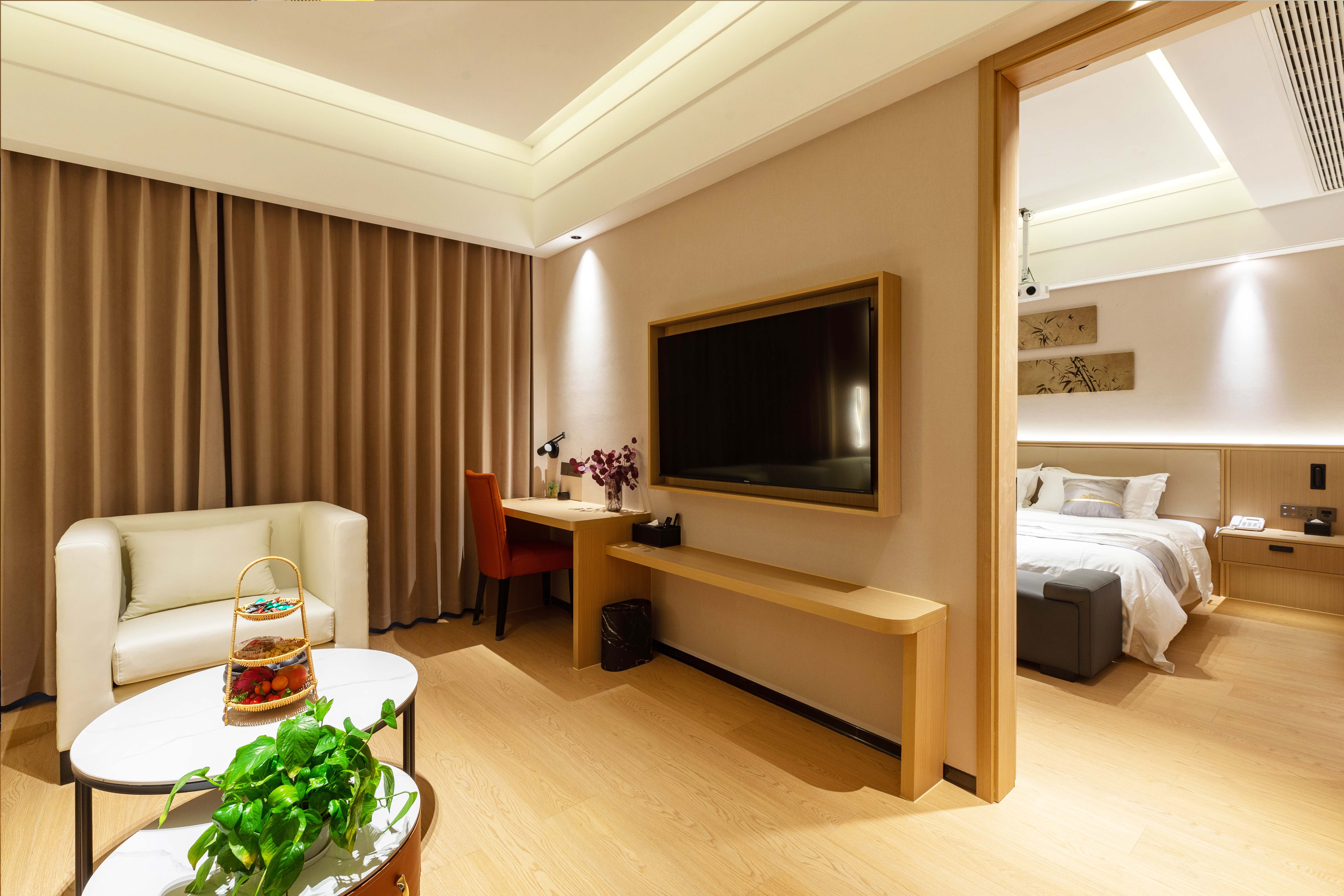 舟山帛屿·铂骊酒店集住宿、餐饮、会议、国际红酒体验馆等多设施于一体。酒店整体设计现代时尚,拥有豪华客房103间,配备超大智能电视与高速网络,随时享受专业影音体验。