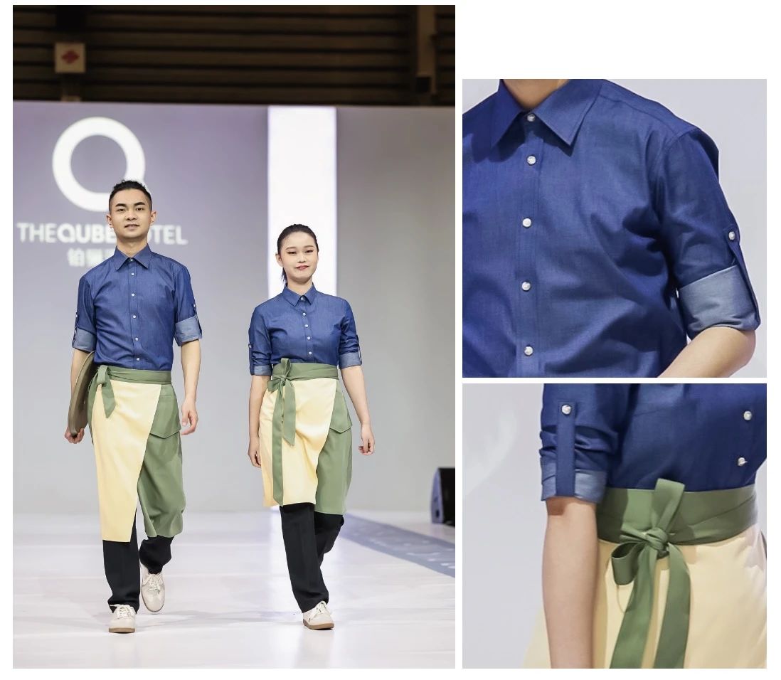 多款制服都体现了人文与实用的结合。铂骊酒店的铂雅全日餐厅的员工穿着着牛仔面料的衬衫,展现出干练与简洁,每一粒纽扣都源自ESG再生材料。衬衫袖子上更是增加了袖袢,以便在工作繁忙时,可以把袖子挽起来,以袖袢固定,时刻充满活力与朝气。服装的小口袋容量却不小,方便携带各种工作用品与工具。